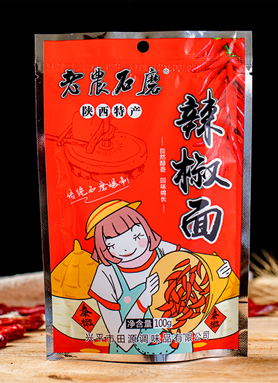 老農石磨系列產品選用興平原產線椒,具有皮薄、肉厚、粒小、色澤鮮亮、香辣春香、辣不過喉的特點;人工精挑細選、去蒂除雜,使用旋轉式鍋爐恒溫炒制確保辣椒色澤鮮艷味道醇香;沿用原始青石碾磨工藝,利用青石清涼特性收到了良好的碾磨散熱效果,保留辣椒原有的自然香味。經篩選、炒制、碾磨等多到古法工藝使產出的辣面色澤紅亮,辣味濃郁,營養豐富,味道醇香。